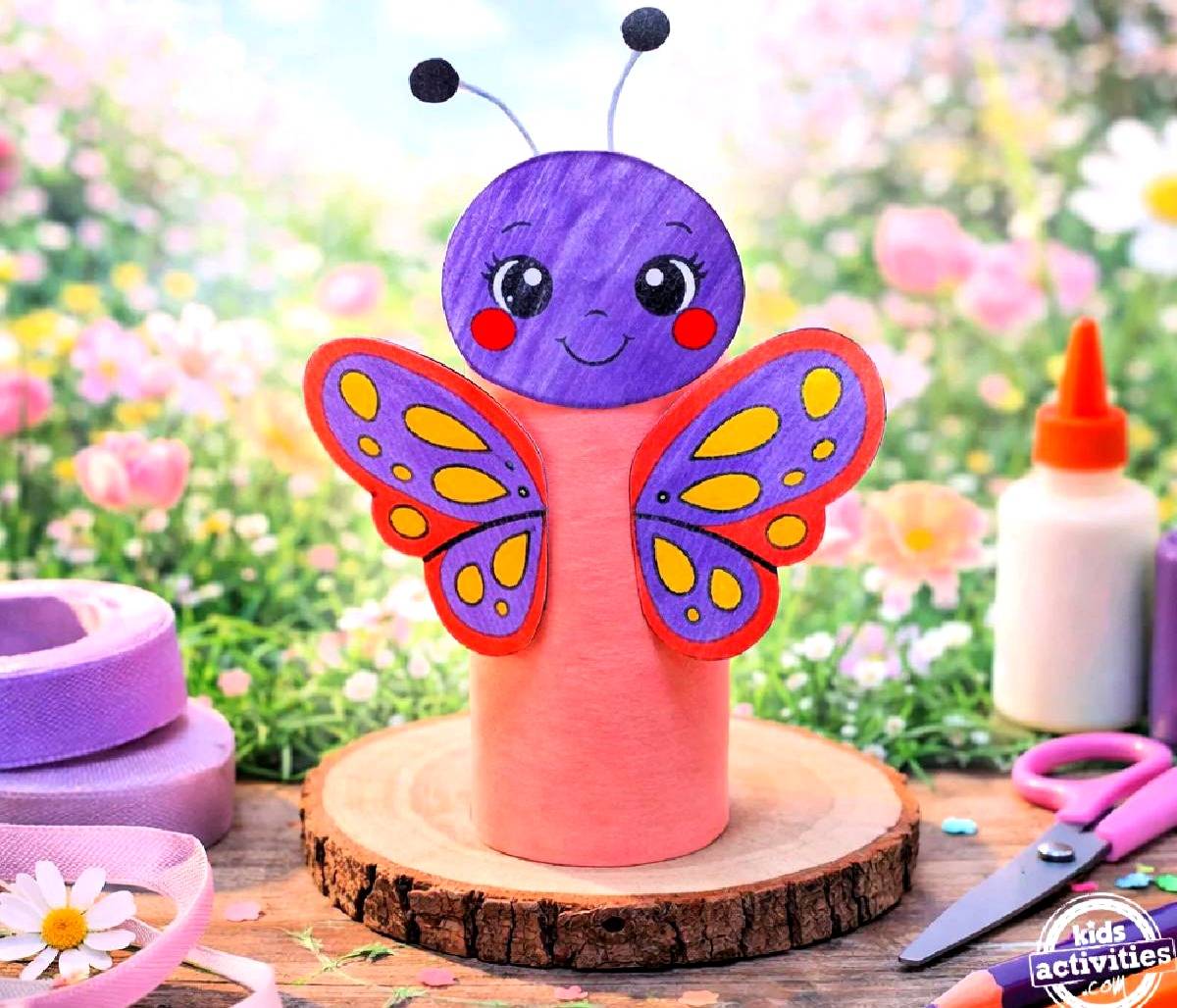 Kids of all ages will love coloring, cutting, and putting together a cute little butterfly! It’s a simple paper craft, but it’s a lot fun considering spring is nearly here. And it doubles as a toilet paper roll craft using only budget-friendly craft supplies.