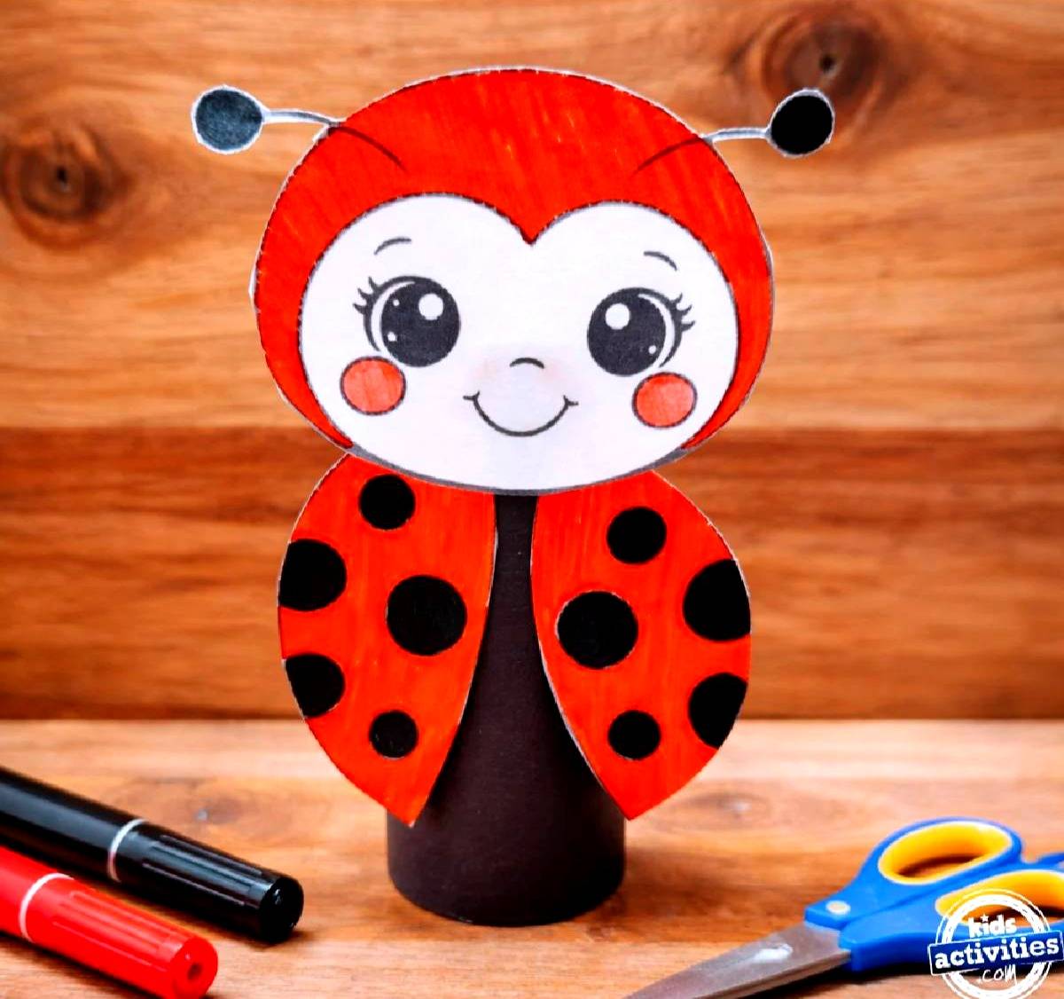 There is no wrong way to put together your ladybug. You can cut along the dotted lines or cut along the black lines. It’s made easy for bigger kids and younger kids alike. Download and print our ladybug template now...
